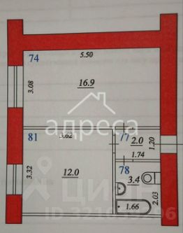 Общая площадь квартиры 34,3/16,9/12, расположена на 2 этаже 9 этажного дома.