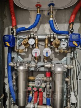 - в санузлах установлены водоузлы (защита от протечек воды, защита от гидроударов, редуктора давления, фильтры, накопительный водонагреватель), встроенная душевая с немецкой душевой панелью AM-PM, подвесные унитазы GROHE, гигиенические души с термостатом, выполнена подготовка под установку стиральной машины и сушилки, электрические тёплые полы.