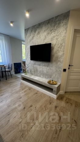 Зал объединён с обеденной зоной у окна, что создаёт комфортные условия для приятного времяпрепровождения во время ужина с просмотром любимых фильмов и передач.