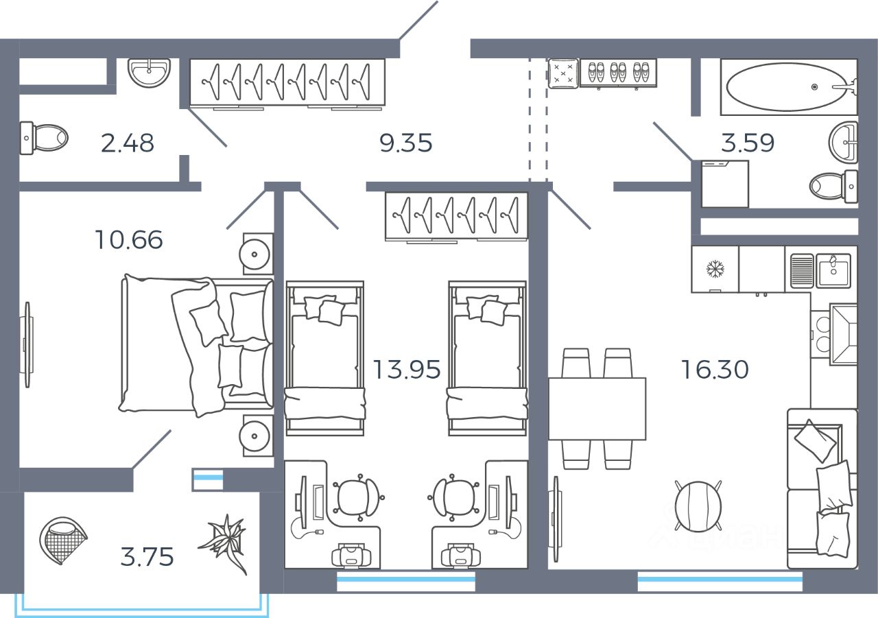 Общая площадь58,21 м²