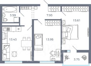 Общая площадь56,39 м²