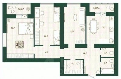 Продаётся 3-комнатная квартира в строящемся доме (Дом 9), срок сдачи: IV-кв. 2026, общей площадью 89.1 кв.м., на 3 этаже.