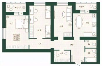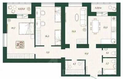 Продаётся 3-комнатная квартира в строящемся доме (Дом 9), срок сдачи: IV-кв. 2026, общей площадью 89.1 кв.м., на 6 этаже.