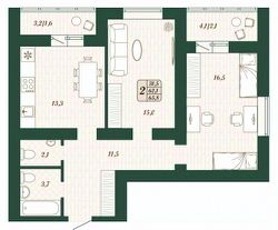 Продаётся 2-комнатная квартира в строящемся доме (Дом 9), срок сдачи: IV-кв. 2026, общей площадью 62.1 кв.м., на 7 этаже.