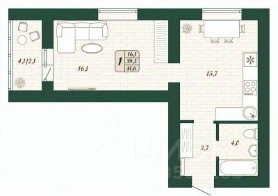 Продаётся 1-комнатная квартира в строящемся доме (Дом 9), срок сдачи: IV-кв. 2026, общей площадью 39.5 кв.м., на 8 этаже.