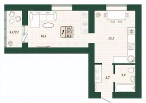 Продаётся 1-комнатная квартира в строящемся доме (Дом 9), срок сдачи: IV-кв. 2026, общей площадью 39.5 кв.м., на 10 этаже.