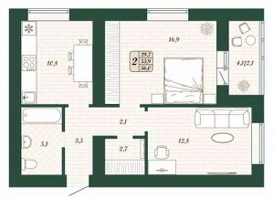 Продаётся 2-комнатная квартира в строящемся доме (Дом 10 ), срок сдачи: IV-кв. 2026, общей площадью 53.9 кв.м., на 10 этаже.