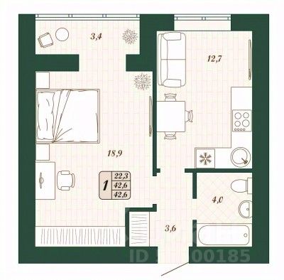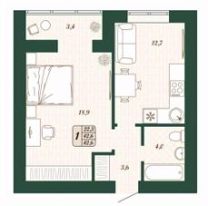 Продаётся 1-комнатная квартира в строящемся доме (Дом 11 ), срок сдачи: IV-кв. 2026, общей площадью 42.6 кв.м., на 2 этаже.
