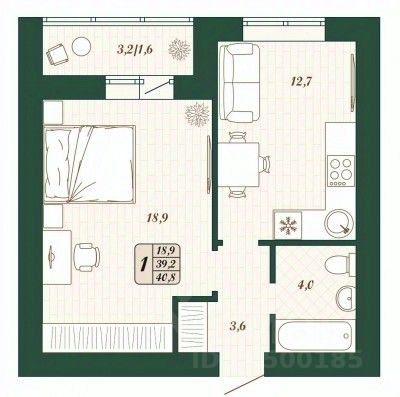 Продаётся 1-комнатная квартира в строящемся доме (Дом 11 ), срок сдачи: IV-кв. 2026, общей площадью 39.2 кв.м., на 5 этаже.