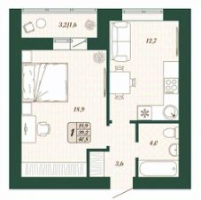 Продаётся 1-комнатная квартира в строящемся доме (Дом 11 ), срок сдачи: IV-кв. 2026, общей площадью 39.2 кв.м., на 9 этаже.