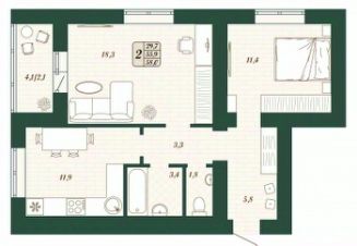 Продаётся 2-комнатная квартира в строящемся доме (Дом 11 ), срок сдачи: IV-кв. 2026, общей площадью 55.9 кв.м., на 13 этаже.