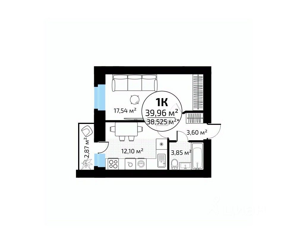 Общая площадь39,96 м²