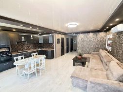 Кухня-гостиная с встроенной техникой (варочная поверхность, духовой шкаф, микроволновая печь, посудомоечная машина, кондиционер) и всей необходимой мебелью для комфортного проживания.