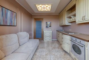 Функциональное планировочное решение. Просторная комната, с установленным кондиционером, предусмотрена гардеробная. Вместительная кухня, с выходом на лоджию. Кухонный гарнитур в классическом стиле, встроенная техника марки Smeg.