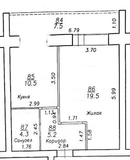 общей площадью 47 кв.м., (с учетом лоджии) кухня 10,5 кв.м, комнат 19,5 кв.м., с\у (совмещенный) 4,3 кв.м, лоджия 7,5 кв.