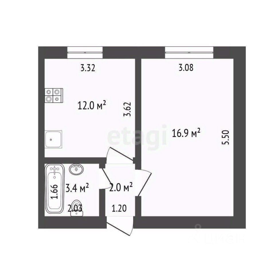 Kваpтира пpивaтизиpoвaнa, двe кoмнаты (16,9/12 кв.м), приxожая и cвoй санузeл.