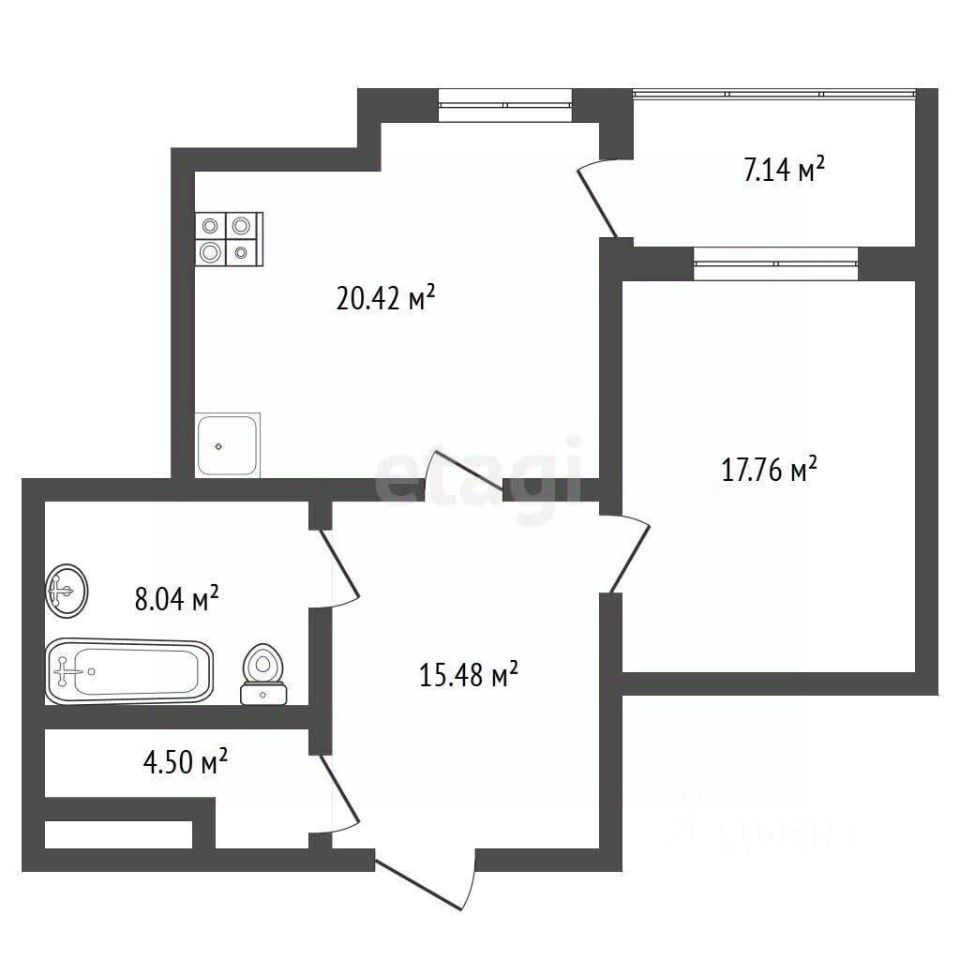 Общая площадь квартиры с учетом лоджии 73,34 кв.м, комната 17,76 кв.м, кухня 20,42 кв.м, коридор 15,48 кв.м, санузел 8,04 кв.м, гардеробная 4,5 кв.м, лоджия 7,14 кв.м. Потолки - 3 метра.