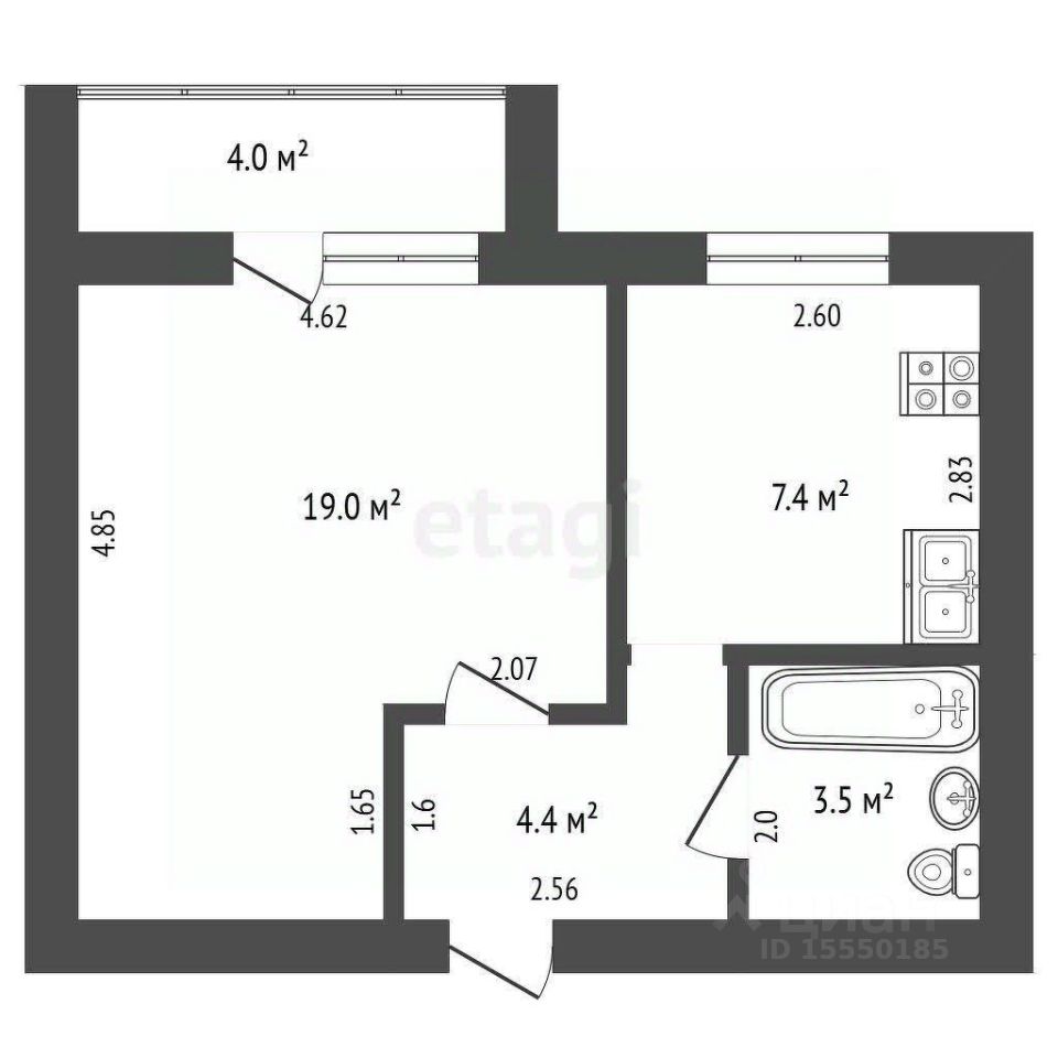 Кухня 7,4 м кв, комната 19 м кв с выходом на лоджию 4 м кв. В квартире выполнен косметический ремонт. Можно заехать и жить