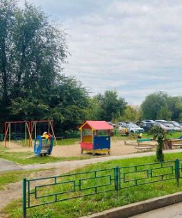 есть детская площадка и две автомобильные стоянки. Комнаты 18 кв.м., 15 кв.м., 9 кв.м., кухня 11 кв.м., коридор
