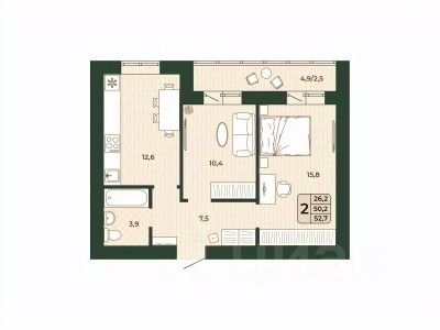 Продаётся 2-комнатная квартира в строящемся доме (дом 5), срок сдачи: IV-кв. 2026, общей площадью 50.2 кв.м., на 6 этаже.