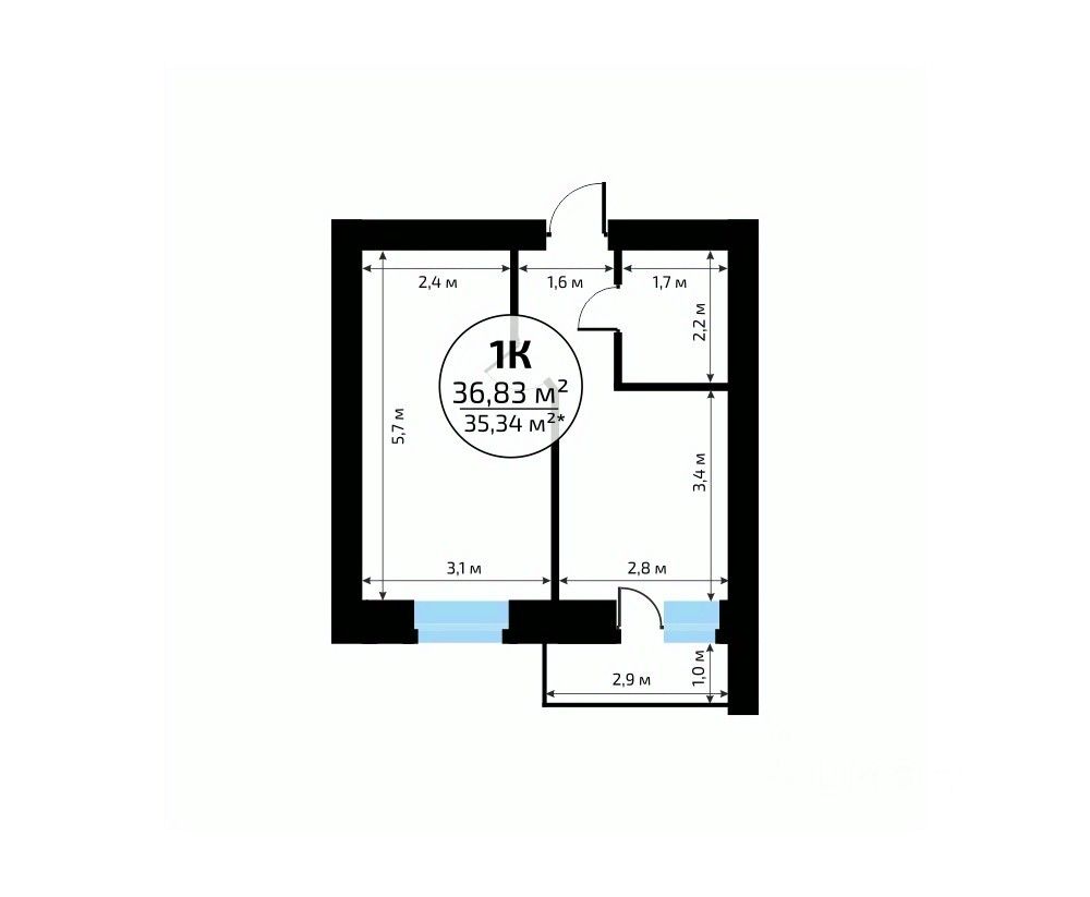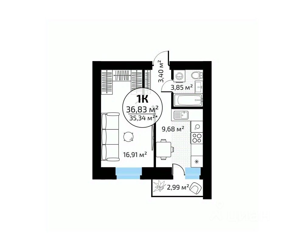 Общая площадь36,83 м²