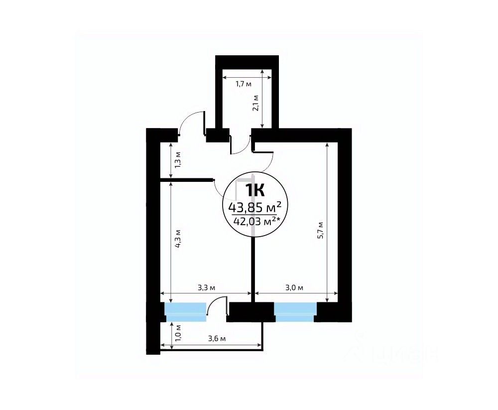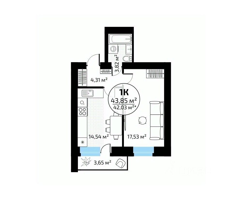 Общая площадь43,85 м²