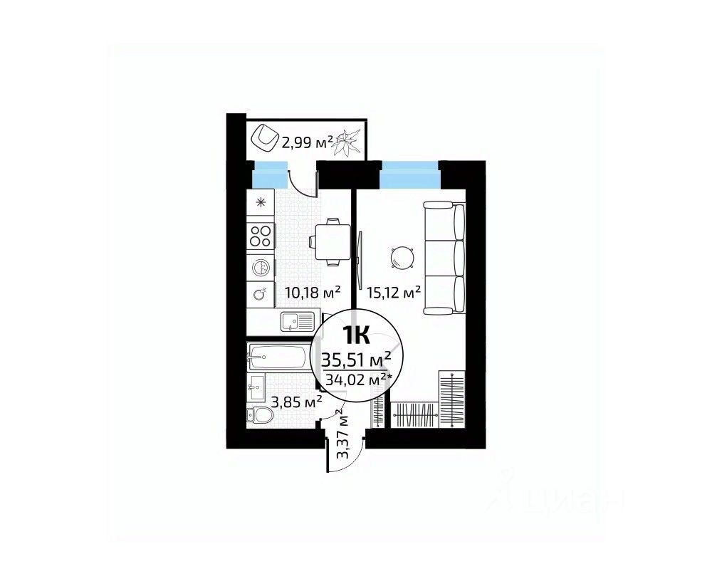 Общая площадь35,51 м²