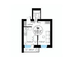 43,85 м²
