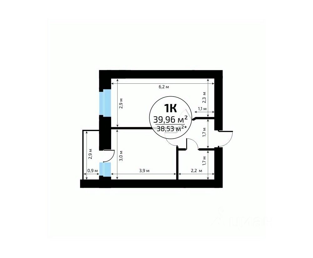 Общая площадь39,96 м²