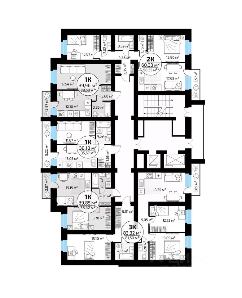 Общая площадь39,85 м²