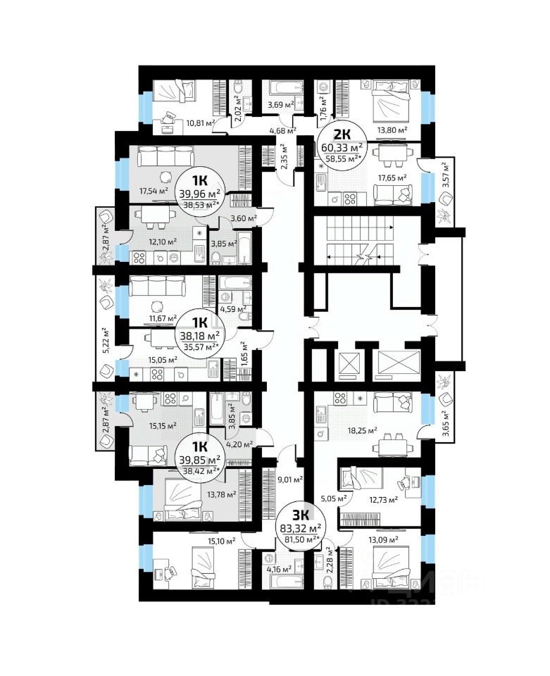 Общая площадь39,96 м²