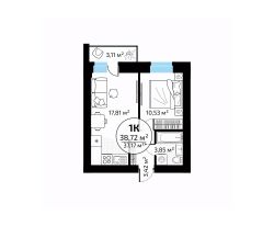 Общая площадь38,72 м²