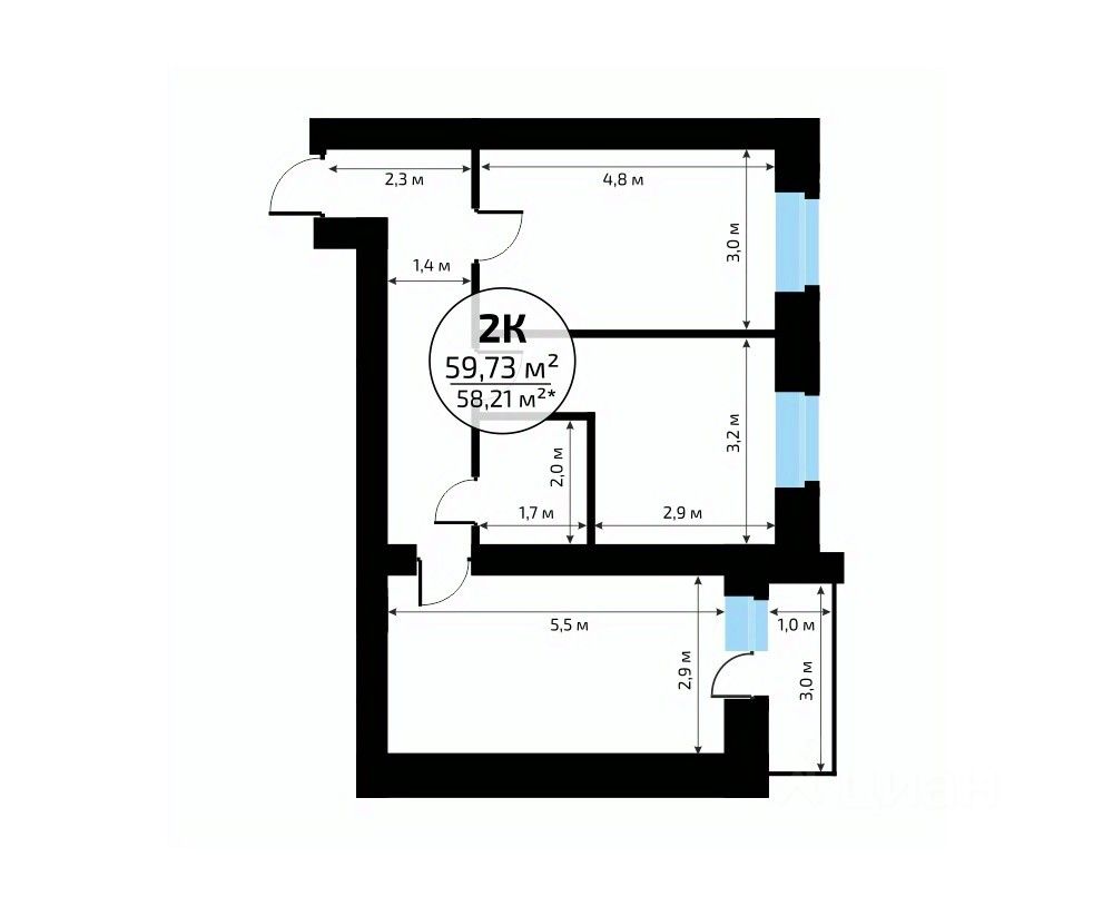 Общая площадь59,73 м²