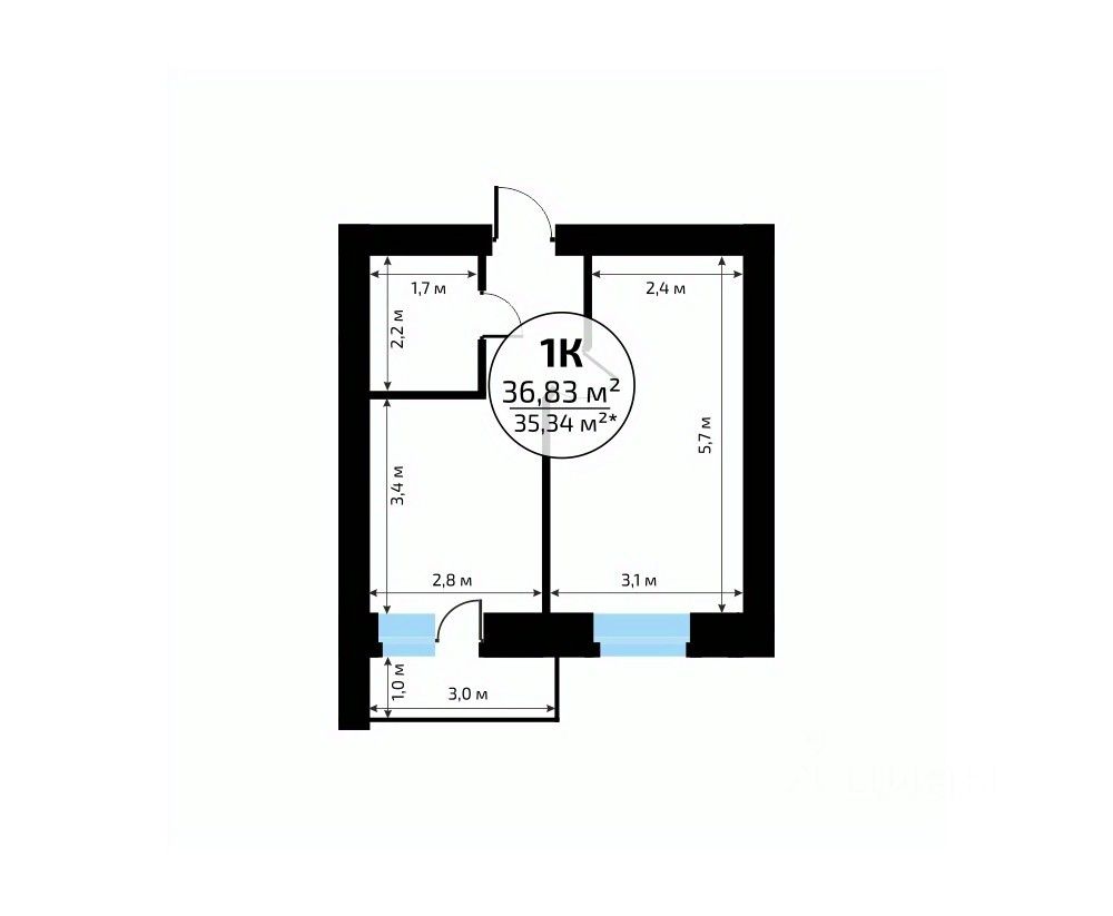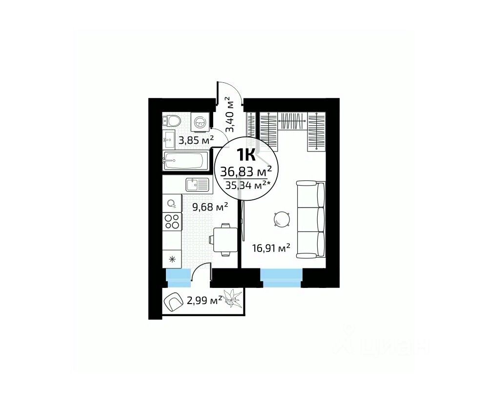 Общая площадь36,83 м²