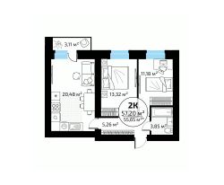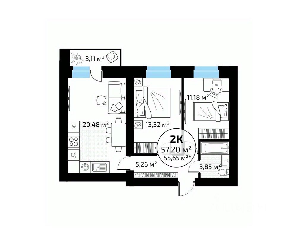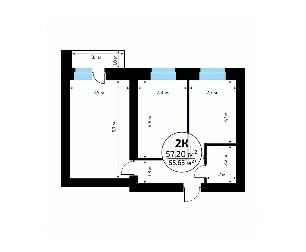 Общая площадь57,2 м²