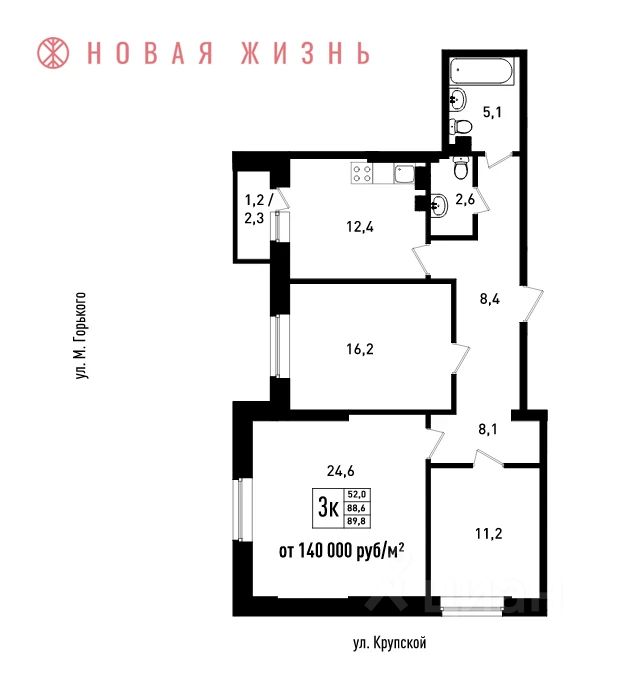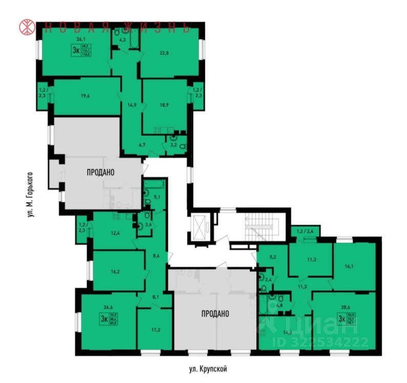 Жилой комплекс "Речной Клуб" (застройщик ООО СЗ Волга Строй Девелопмент) расположен на углу ул. Крупская и ул. Максима Горького.