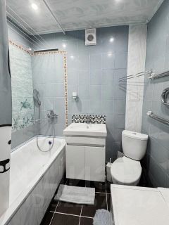 - Совмещенный санузел отделан плиткой и оснащен всем необходимым;
