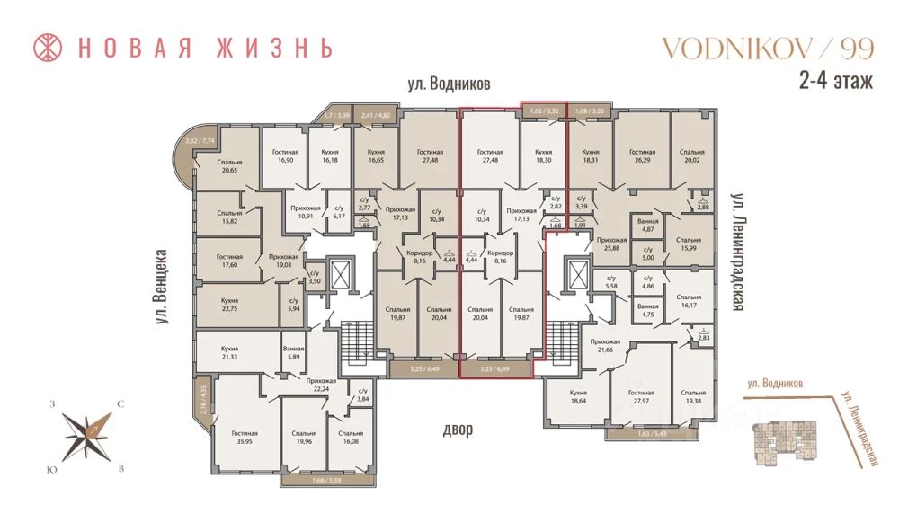 "Vodnikov 99" - это элитный жилой комплекс, расположенный в историческом центре города Самара. Этот клубный дом предназначен для истинных ценителей роскошной жизни. Состоящий из 25 квартир, имеющий 2 подъезда и занимающий 4 этажа, он предоставляет 28 парковочных мест для удобства жителей. Кроме того, расположение комплекса обеспечивает быстрый доступ к Волге, находясь всего в 100 метрах от набережной.