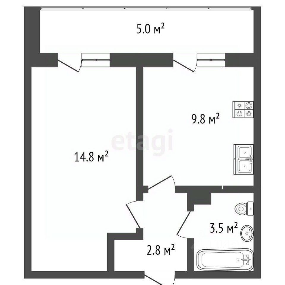Лоджия идет на всю квартиру, что позволяет сделать там зону хранения или зону отдыха.