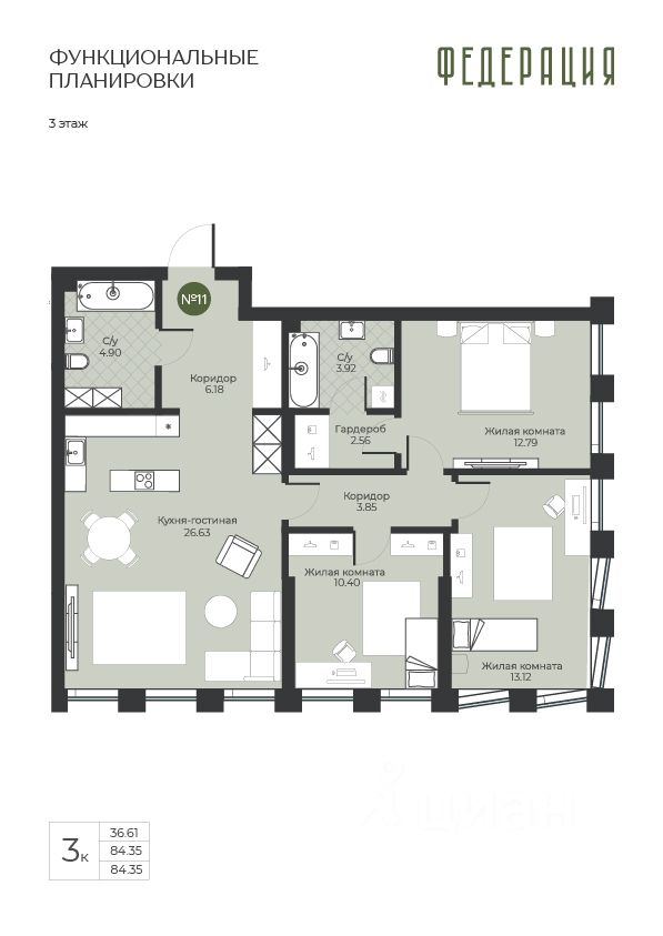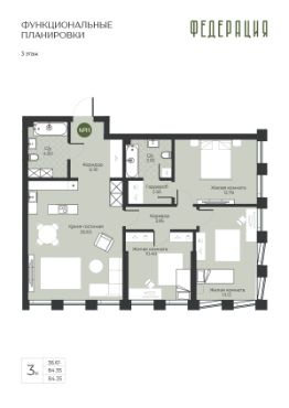 Продаётся 3-комнатная квартира в строящемся доме (Корпус 1), срок сдачи: IV-кв. 2027, общей площадью 84.35 кв.м., на 3 этаже. Новый жилой комплекс "Комплекс Федерация" от застройщика "СЗ РЕНЕССАНС" расположен по адресу Россия, Самара, Ново-Садовая улица (дублёр).