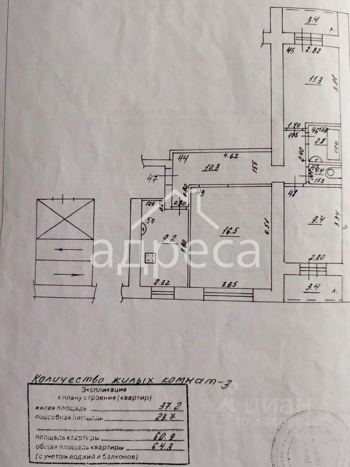 Общая площадь: 60.9 м²