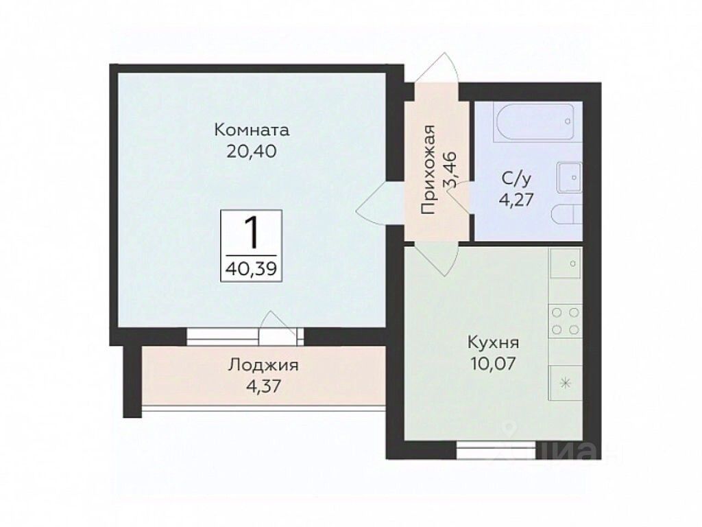 В продаже квартира площадью 40.39 кв. м без отделки. Квартира находится в жилом комплексе "Юность", на 12 этаже 15 этажного дома. Застройщик - ГК "Развитие".