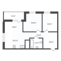 - Отделка стен - краска; пол в жилых зонах - ламинат, в ванной и прихожей - керамогранит; стены ванной - керамогранит;