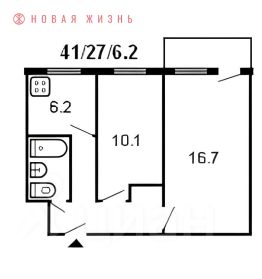 Общая площадь 41,8м2.