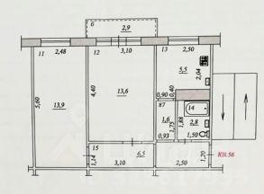 Жилая площадь: 2 комнаты