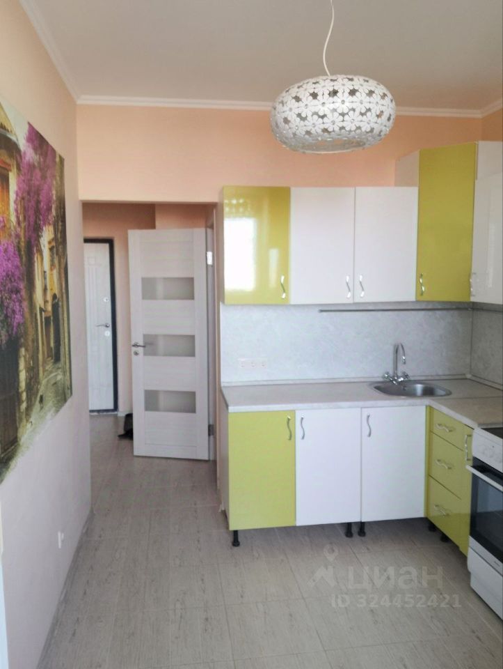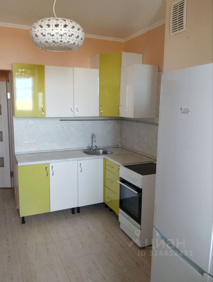 Квартира частично меблирована — остаются диван, кухонный гарнитур и техника.