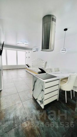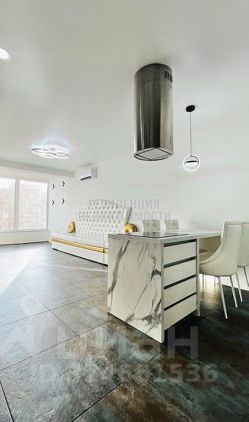 Просторная, светлая и уютная кухня-гостиная-зал 45,9 кв. м с островной обеденной зоной,