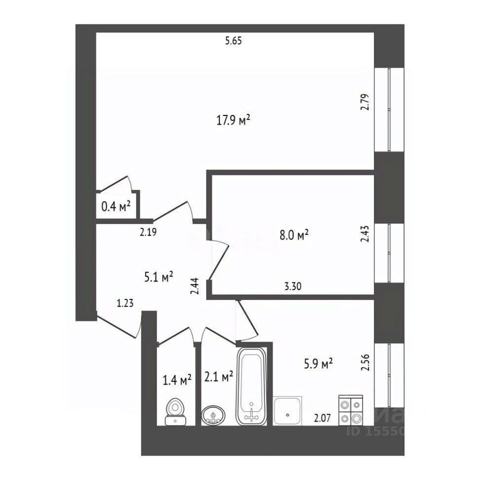 Двухкомнатная квартира площадью 40.4 кв. м расположена в кирпичном доме в Железнодорожном районе. Планировка с двумя изолированными комнатами (17.9 и 8 кв. м) обеспечивает приватность и позволяет гибко использовать пространство — для семьи, работы или сдачи одной из комнат.