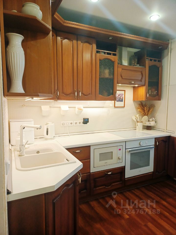 В отличном состоянии, продается с мебелью и техникой (качественный кухонный гарнитур, встроенные духовка, микроволновая печь, варочная поверхность, вытяжка), большой шкаф-купе в коридоре, кондиционер и др.