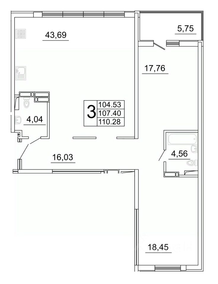 Продаётся 3 комнатная квартира 415 в строящемся жилом комплексе "Дом у Космопорта 2";.